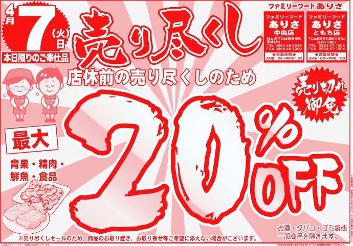 売り尽くし 20%OFF