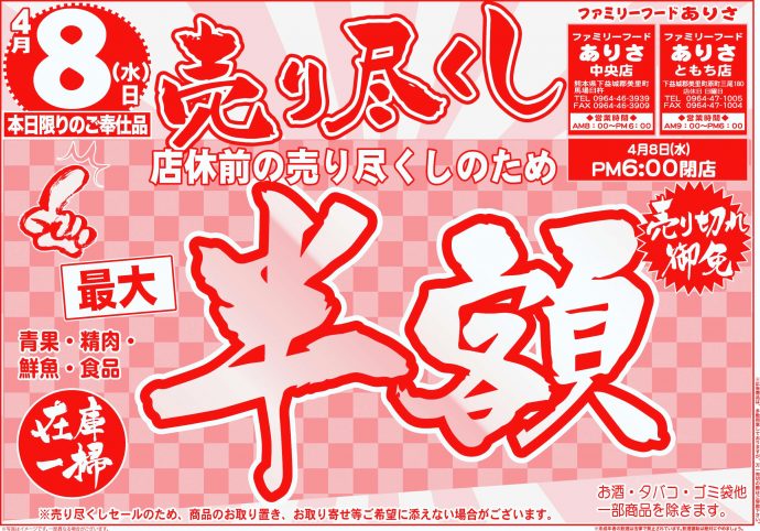 売り尽くし 半額